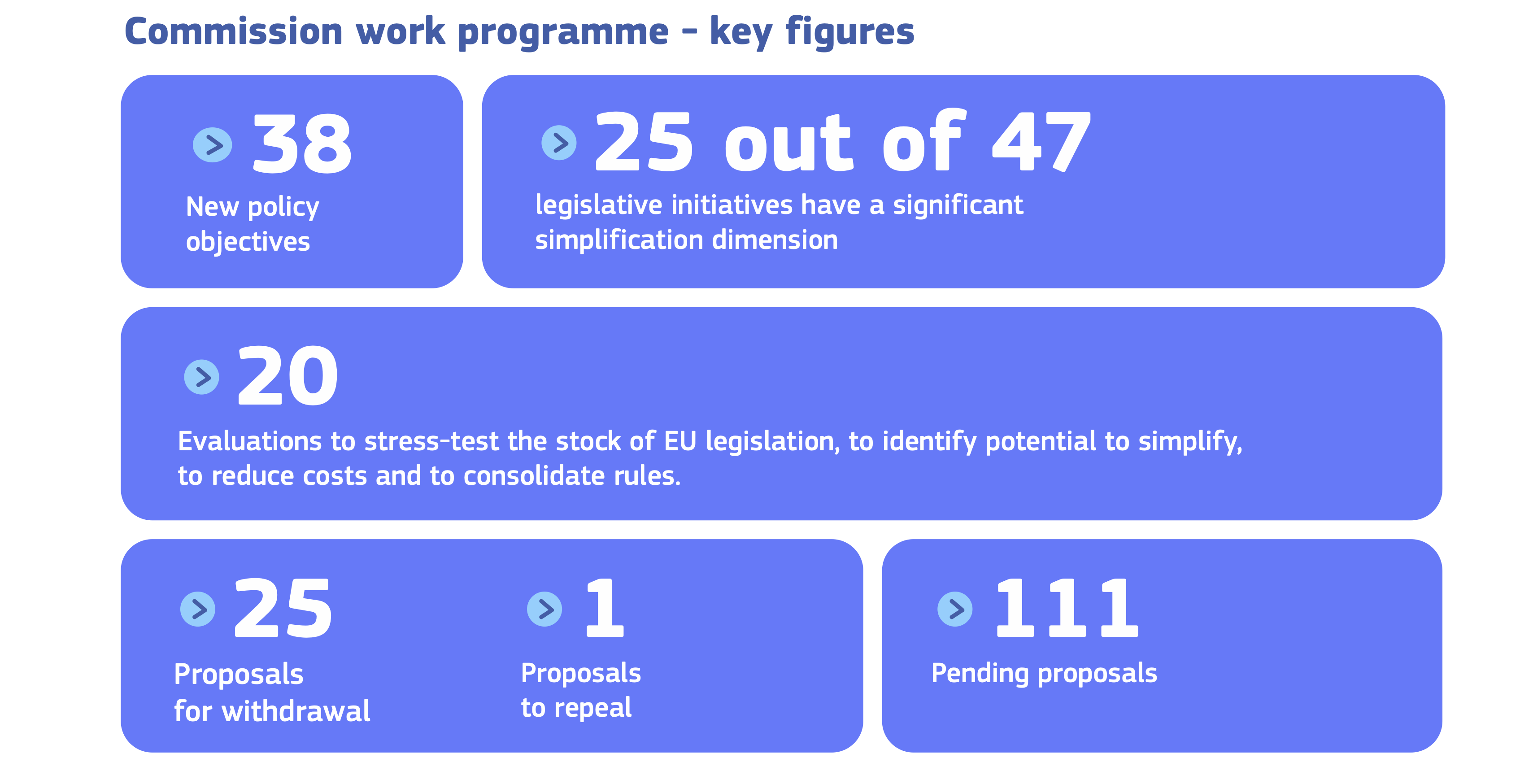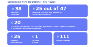Nell’individuare le principali iniziative legislative, la Commissione mette in primo piano l’eliminazione degli oneri burocratici e il rafforzamento della semplificazione legislativa che porterà a un risparmio di 8,6 miliardi di euro per le imprese e i cittadini. Tra le misure già adottate i sei pacchetti omnibus e altre misure indicate dalla Commissione nel primo rapporto sulla semplificazione, l’attuazione e l’esecuzione (COM(2025)871, rapporto; Factsheet).